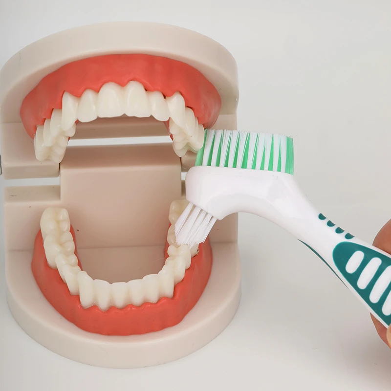 Um lado para escovação ampla, outro para os cantos e espaços entre os dentes.